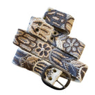 Gorgeous embroidered belts designed to be versatile with 5 sets of holes 2" apart - they can be worn at the hip or at the waist. You will love the slight stretch that conforms to the body after a few days of wear - just like their favorite pair of jeans! • 100% wool • lead free metal buckle • designed in the U.S.A. and handcrafted by master artisans in Peru