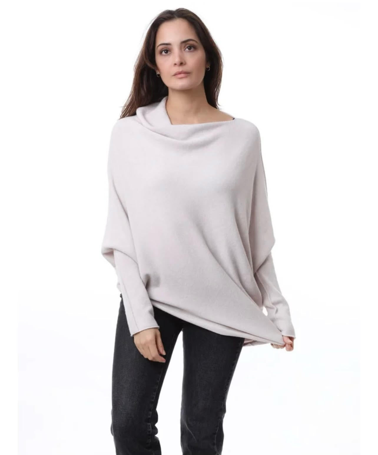 The one-size-fits-all Lula Sweater from Kris Ana is so versatile and can be worn on or off the shoulder. features rouching on the side which can be adjusted for the perfect fit!